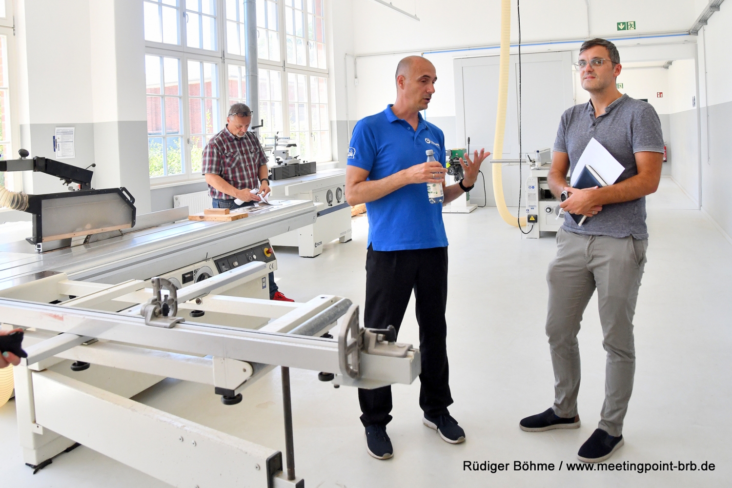 Gekauft wurde die Tischlerei von Vorbesitzer Tino Busse, der selbst 2009 hier mit seinem Gewerbe eingezogen war. „Für mich stand, wie für viele Handwerker, die Frage der Nachfolge an. Ich hatte schon einen Mitarbeiter im Betrieb, der eine Behinderung hatte. So kam ich mit Matthias Pietschmann intensiver ins Gespräch und da entstand die Idee, dass die Lebenshilfe die Tischlerei kauft“, erklärt Tino Busse. Das Gute daran, er wird als Tischlermeister weiter im Betrieb tätig sein, zu dem neun Mitarbeiter gehören, von denen fünf Mitarbeiter eine Beeinträchtigung haben.