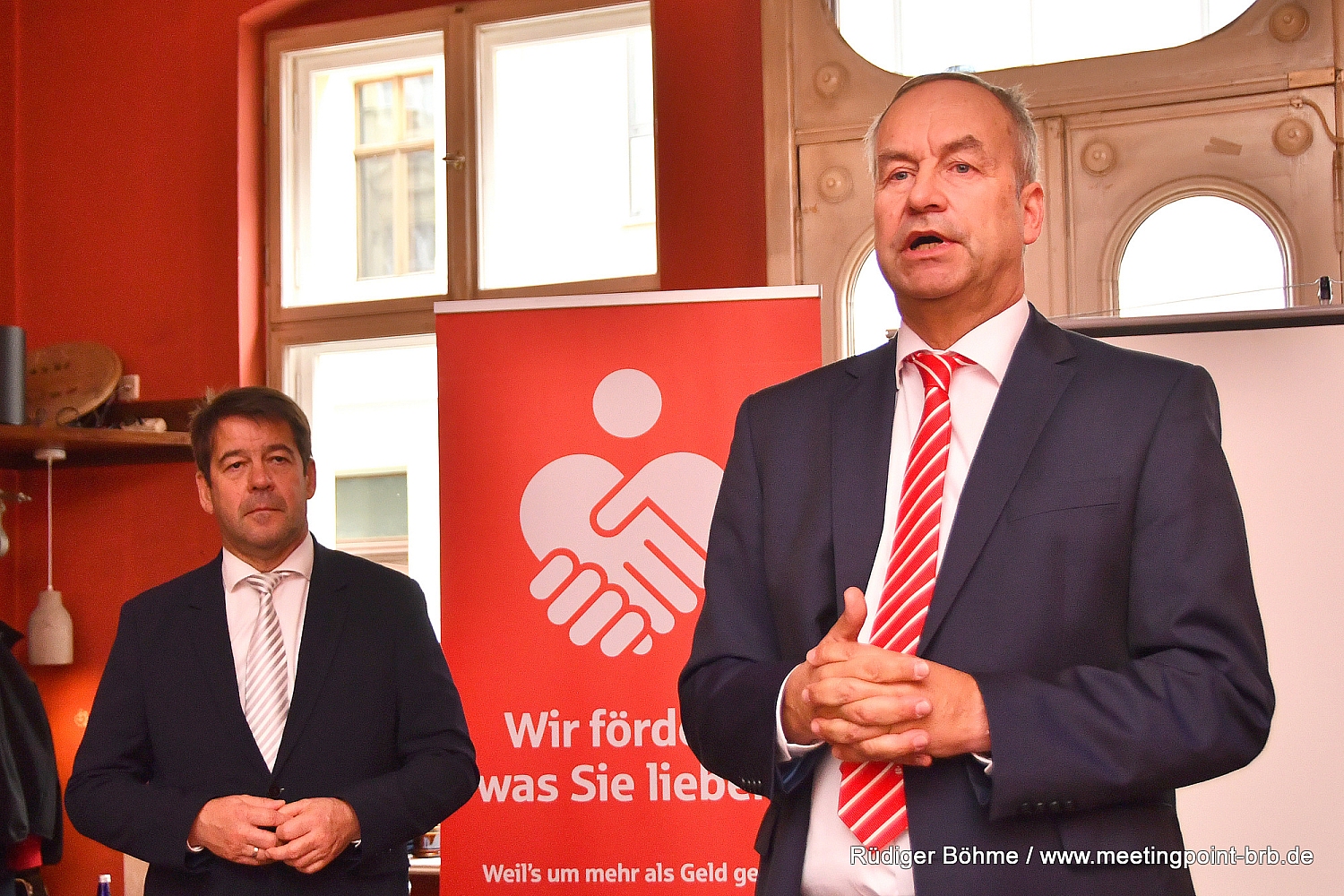Die Übergabe nahmen Andreas Schulz, Vorstandsvorsitzender der MBS, und Steffen Scheller, Oberbürgermeister der Stadt Brandenburg an der Havel, vor. Die Vertreter der Vereine stellten dazu kurz ihre einzelnen Projekte vor, für die die Spenden angedacht sind und mit denen sie sich für eine MBS-Spende beworben haben. Andreas Schulz lud während der Projektvorstellungen auch immer wieder andere Vereine der Stadt ein, sich mit Projekten zu bewerben.