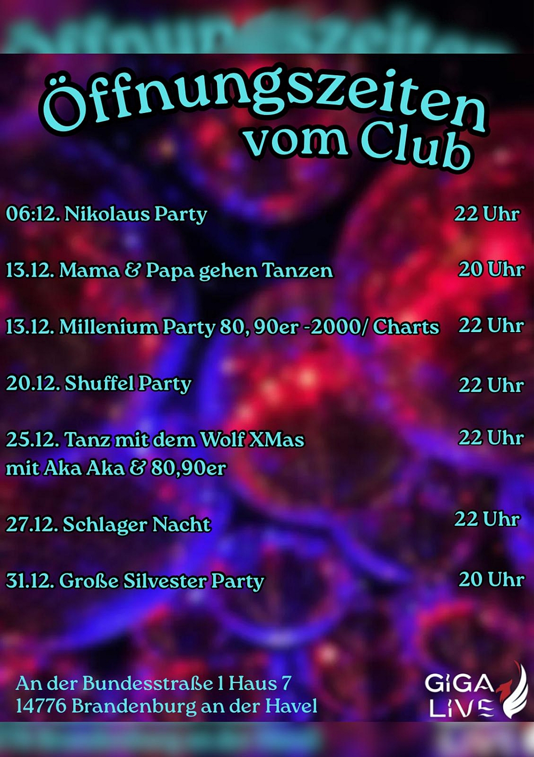 Am Samstag wird gleich doppelt im Giga Live gefeiert: Ab 20 Uhr startet die "Mama & Pappa gehen tanzen"-Party, anschließend startet ab 22 Uhr die "Millennium Party",