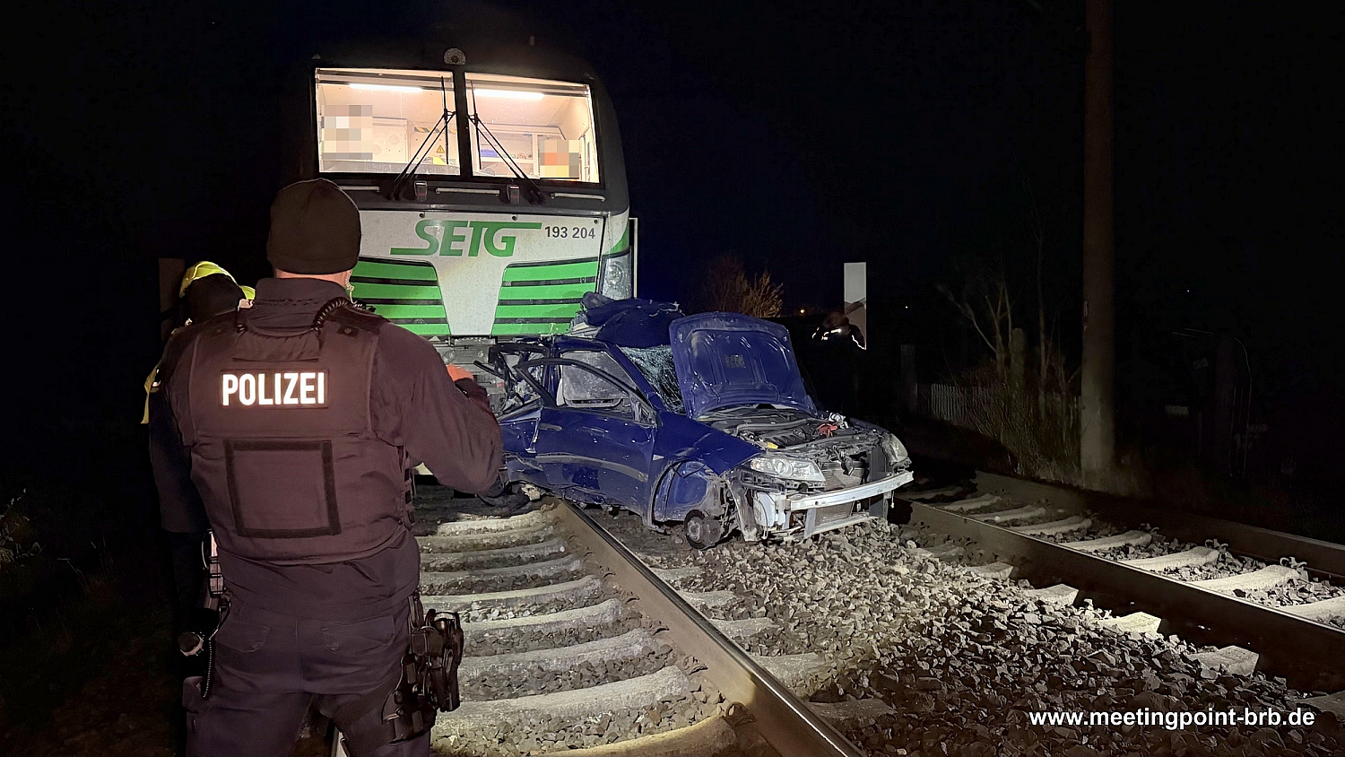 Rettungskräfte kümmerten sich umgehend um die im Fahrzeug eingeklemmte Fahrerin, konnten jedoch nichts mehr für sie tun. Die Frau verstarb noch an der Unfallstelle. Der Triebwagenführer (36) und ein Mitfahrer im Triebwagen (34) erlitten einen Schock. Sie wurden vor Ort von Rettungskräften behandelt und wenig später in ein Krankenhaus gebracht."