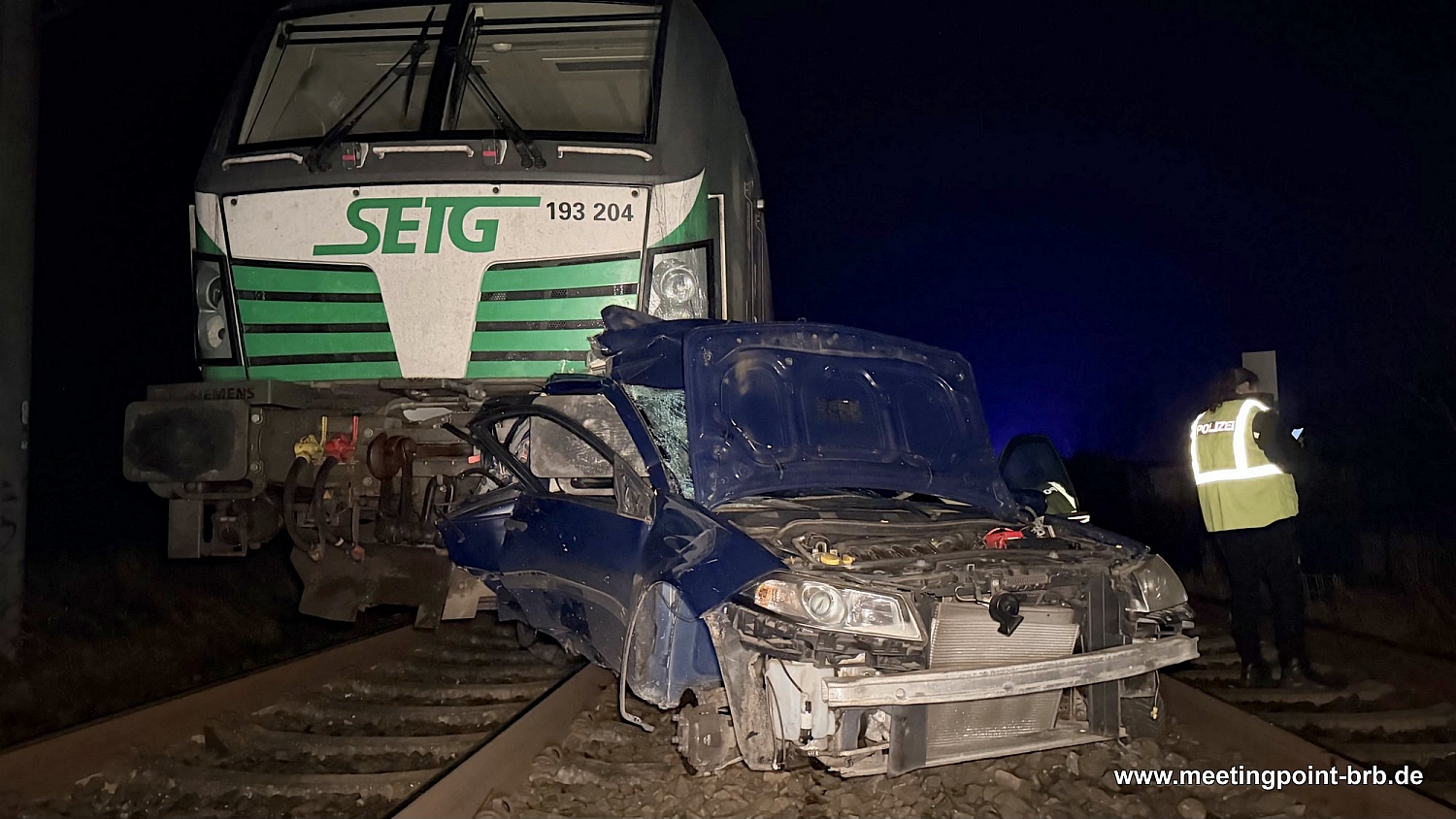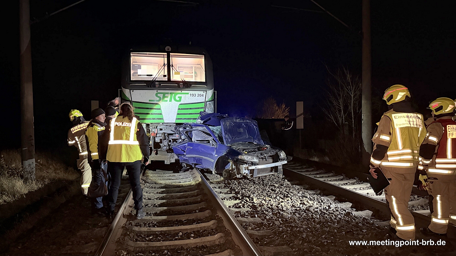In den immer noch gesperrten Bahnübergang Planebrücke ist gegen 3 Uhr ein PKW mit Brandenburger Kennzeichen gefahren - mit dramatischen Folgen! Ein laut Feuerwehrangaben rund 500 Meter langer Güterzug - der aufgrund einer anderen Bahnbaustelle diese Strecke nutzte - krachte in das Fahrzeug. Erst nach mehreren Hundert Metern kam der Zug zum Stillstand. Für die Fahrerin (71) des Autos war es da zu spät - sie starb beim Unfall. Ihr völlig zerstörtes Fahrzeug klemmte unter der Lok.