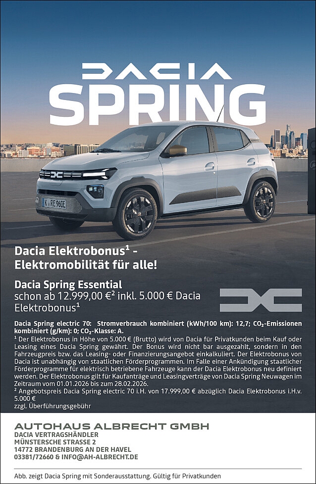 Dacia Spring – elektrisch fahren zum Top-Preis! 5000,00€ Elektrobonus sichern!