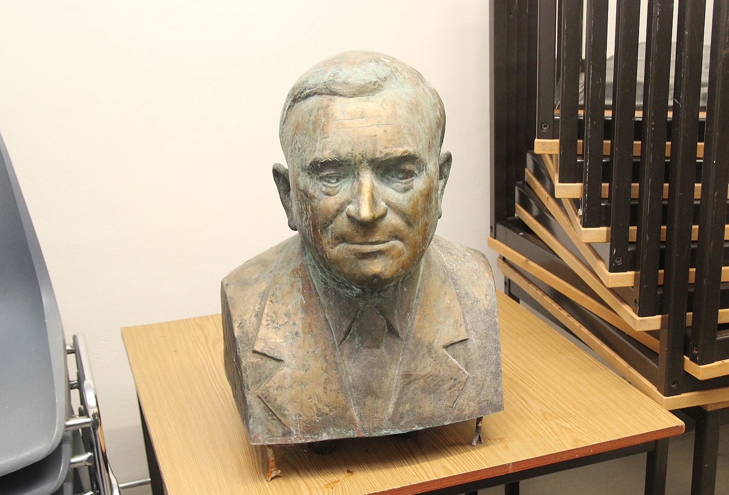 Ein weiterer Kopf des beliebten Oberbürgermeisters, er war 1945 und dann noch einmal von 1957 bis 1965 im Amt, lagert bereits seit 1990 im Depot des Stadtmuseums. Auch er ist ein Werk von Dietmar Block. Er wurde im Juli 1986 vom Rat der Stadt bei dem Künstler in Auftrag gegeben und kostete damals inklusive Guss etwas über 2000 Mark. Den Weg in das Museumsdepot könnte nun auch der Kopf aus Kirchmöser nehmen. „Wir werden dem Wechsel der Büste ins Museum keine Steine in den Weg legen“, so der stellvertretende Schulleiter Sören Stöhr.