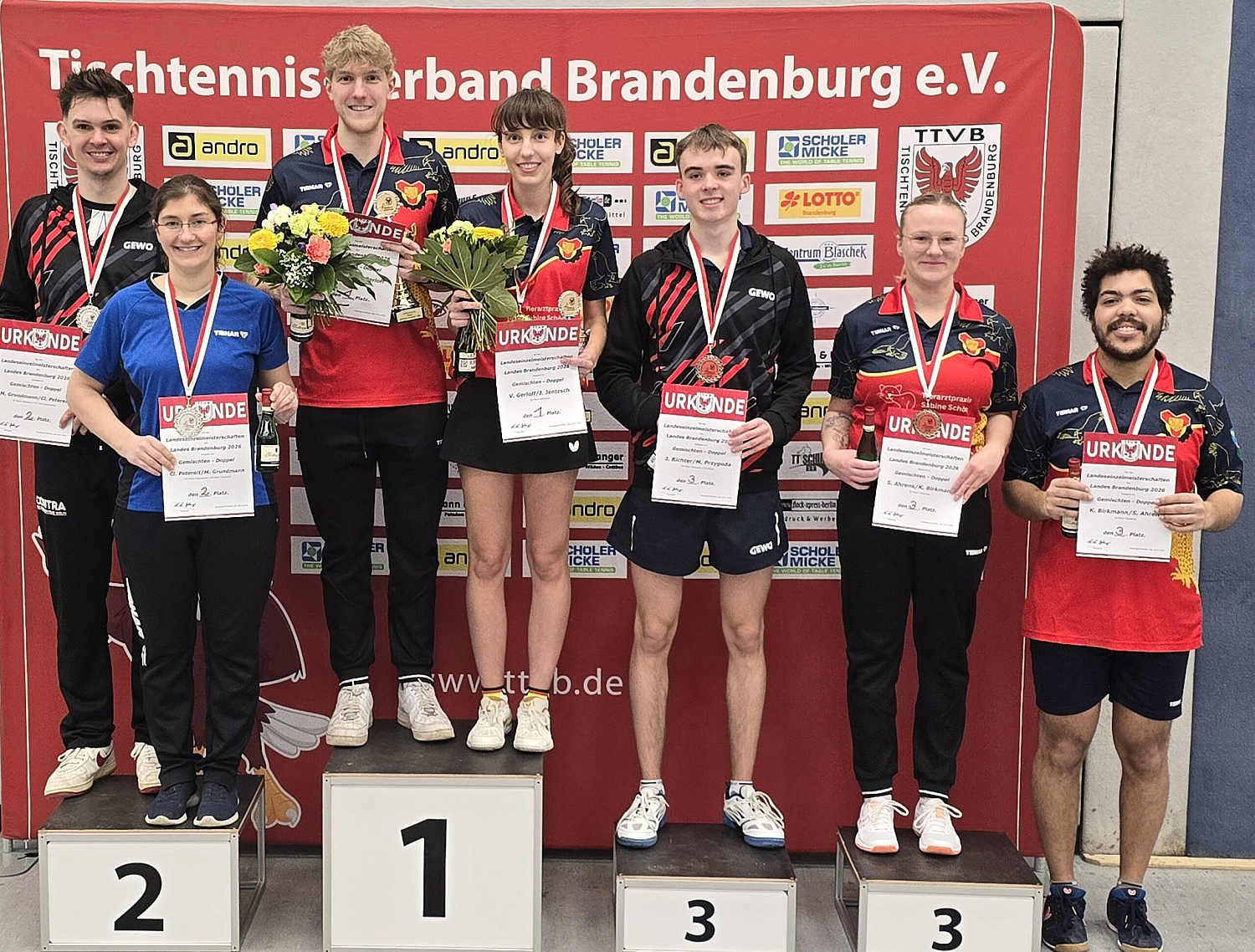 Im gemischten Doppel trat sie mit ihrem Vereinskameraden Sebastian Fischer an den Tisch. Nach einem 3:0 Sieg in der ersten Runde mussten sie in der zweiten Runde den späteren Zweitplazierten Grundmann/Petereit (Motor Falkensee/TTC Finow-Eberswalde) zum 3:0 Erfolg gratulieren.