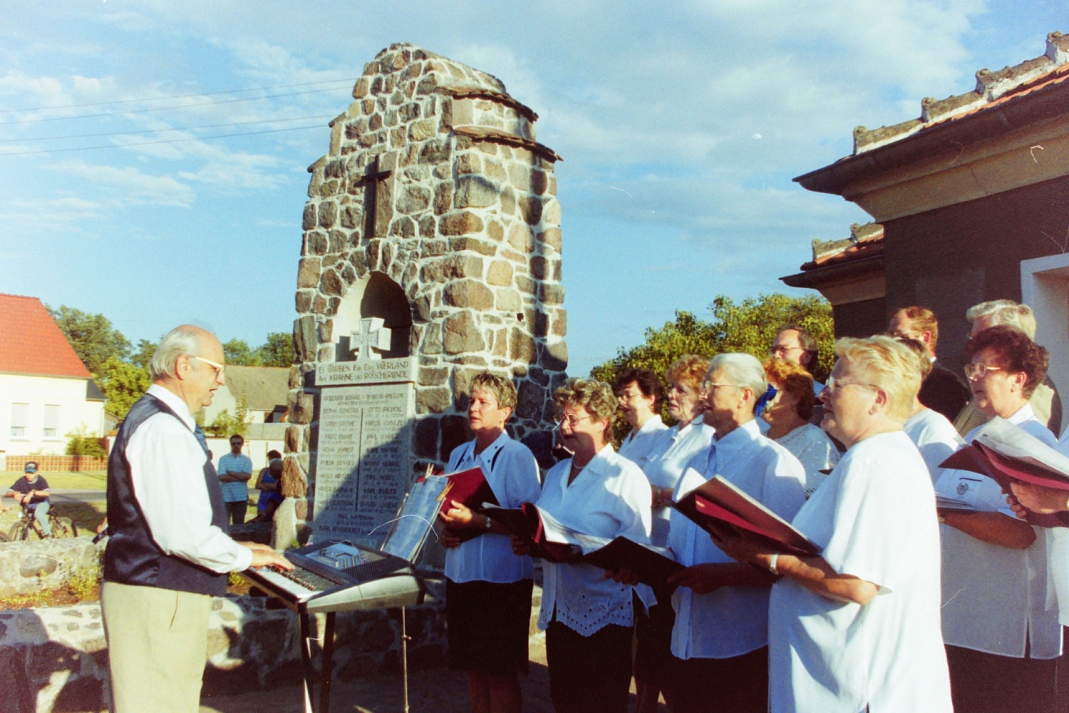 Im Juni 2000 wurde das Denkmal wiedereingeweiht. Über 20.000 Euro flossen in die Sanierung, wurde auch die verwitterte Tafel aufgearbeitet. Hinzu kam eine Tafel für die Toten des 2. Weltkrieges. Recherchen ergaben immerhin 40 Namen. Darunter waren gleich drei Willmanns, die älteren Brüder von Heini Willmann, der selbst damals noch zu jung war, um in den Krieg zu ziehen.