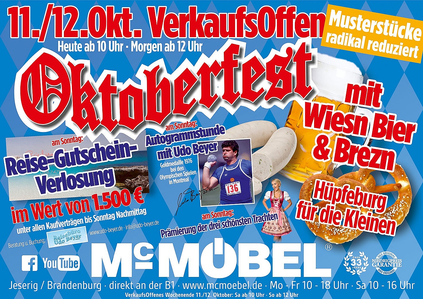 Heute & morgen, 11. & 12. Oktober 2025 - Oktoberfest & verkaufsoffenes Wochenende bei Mc-Möbel