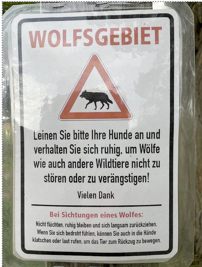 Die Göttiner Bürgerinitiative Naturnahe Orts und Stadtteile e.V. (GBNO) wurde von Spaziergängern und Pilzsuchern darauf aufmerksam gemacht, dass im Waldgebiet Paterdamm/ Krahne Schilder an den Wanderhinweisen angebracht wurden mit der Aufschrift: „Wolfsgebiet“. Diese Schilder haben keinen offiziellen Charakter. Tatsächlich lebt ein Wolfsrudel vor Ort und hat inzwischen Nachwuchs bekommen.