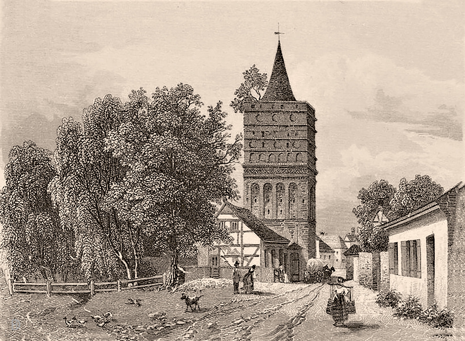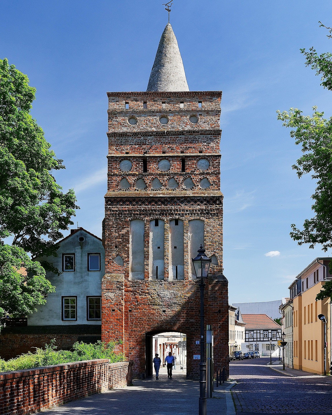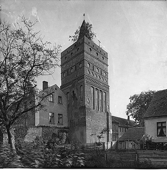 1945 wurde der Rathenower Torturm durch Geschütztreffer geschädigt.