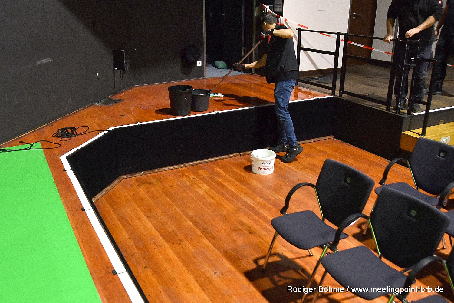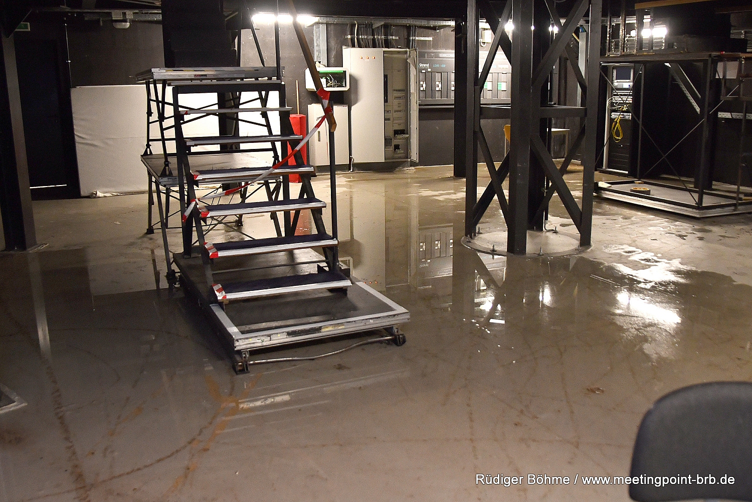 Für die Mitarbeiter des Brandenburger Theaters hieß es heute mit Arbeitsbeginn, die Wischlappen und den Mob in die Hand zu nehmen, anstatt ihrer gewohnten Arbeit nachzugehen. In den Morgenstunden hatte aus bislang unbekannten Gründen die Sprühflutanlage im Großen Haus ausgelöst und binnen kürzester Zeit den Zuschauerraum, den Orchestergraben und Lagerräume unter Wasser gesetzt. Nach ersten Schätzungen seitens des Theaters könnten 30.000 bis 50.000 Liter Wasser ausgetreten sein. Im Tagesverlauf werden Krisensitzungen durchgeführt, um über den Spielbetrieb ab Sonntag zu entscheiden.