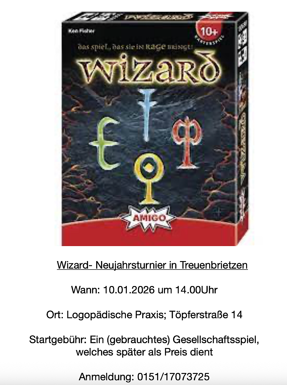 14 Uhr: “Wizard-Neujahrsturnier” in Treuenbrietzen, Töpferstraße 14 [Klick]