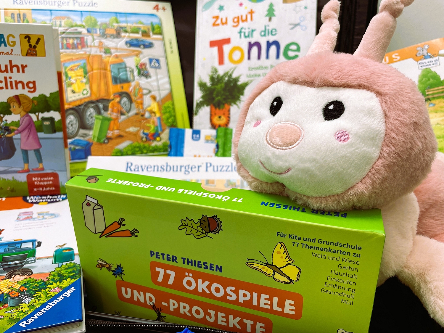 Ausgestattet ist der Koffer mit zahlreichen illustrierten Kinderbüchern, die erklären, was mit Abfällen nach der Abholung durch die Müllabfuhr geschieht und warum richtige Entsorgung wichtig ist. Ergänzt wird das Material durch kleine Abfallbehälter mit Sortierkarten, Puzzles sowie den Kuschel-Kompostwurm „Rosi“, der den Stoffkreislauf von Bioabfällen anschaulich erklärt.